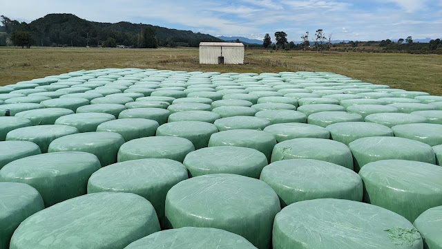 I rolled easily through the country and only a few ups, some of which I stitched up zigging and zagging giving the satellite tracking a fit and making it look like I'm stitching the lines on the road together. There's little camber on the road so easy to do but sometimes because of my gear troubles I had to walk, a mart 5 to 5.5 kmph, quite a respectable speed and a relief for the bum and some leg muscles. I clambered up these massive bales of grass, 15x19x2- a whole lot of grass.